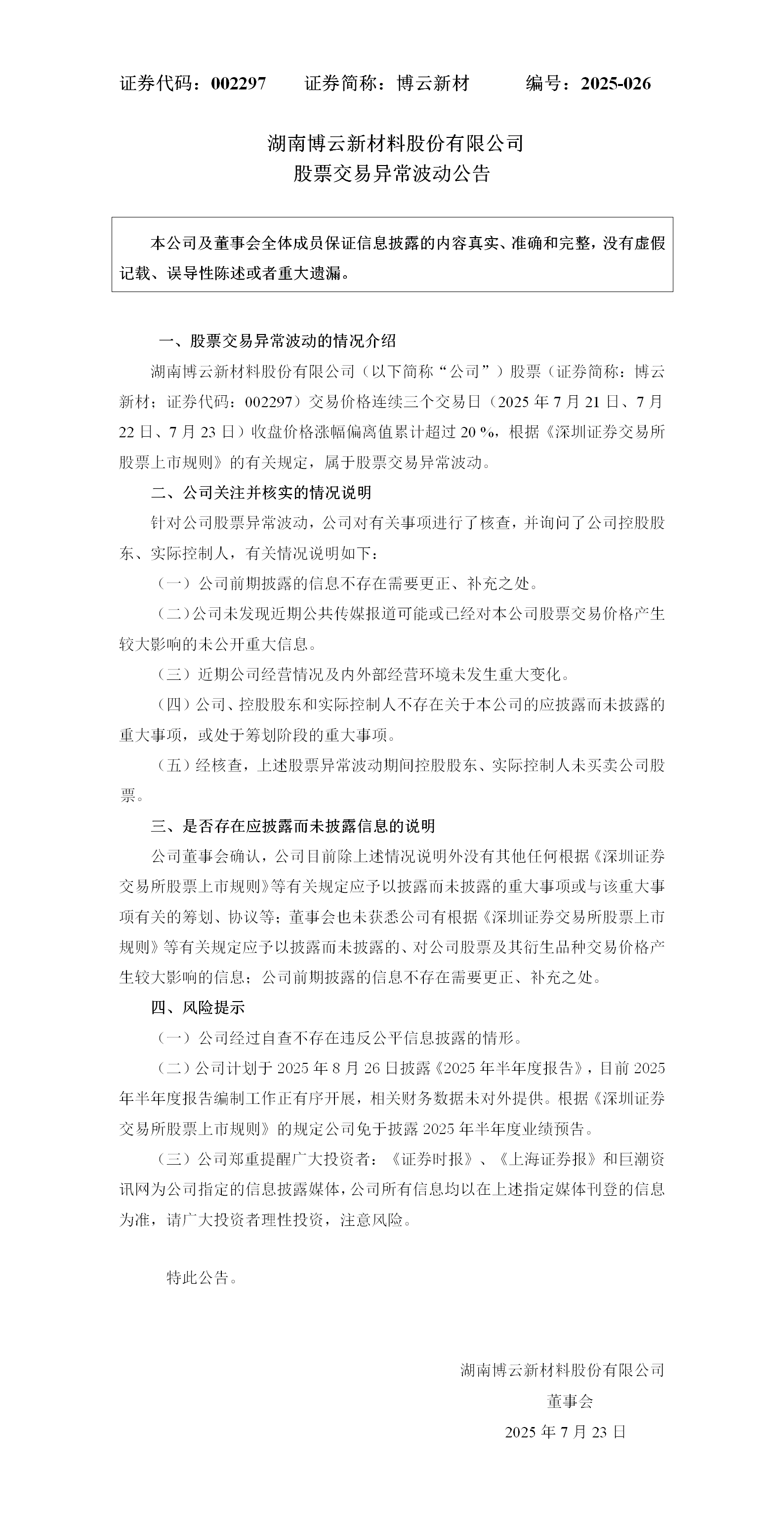 【2025-026】股票生意异常波动通告