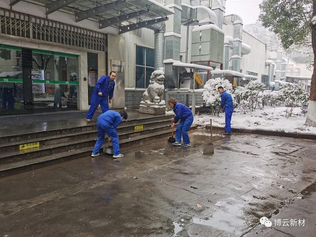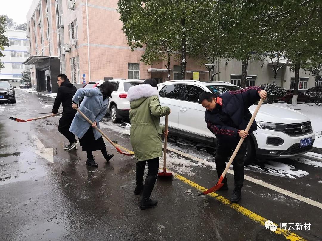 周末的一场大雪为我们带来了玉树琼花的美景,,,,,,,但也给路面带来了大宗积雪和冰冻,,,,,,,给交通出行和生爆发涯带来了未便和清静隐患。。。。。。。为了利便各人周一上班的出行清静,,,,,,,住在好博(中国)体育园区的党员和入党起劲分子冒着风雪,,,,,,,连夜对好博(中国)体育新材园区内主要蹊径的积雪举行起源清扫。。。。。。。       12月27日(周一)上午,,,,,,,好博(中国)体育新材党委、好博(中国)体育新材第一党支部在集中寓目学习贯彻省第十二次党代会精神党员教育电视片后,,,,,,,向导率先,,,,,,,全体党员、入党起劲分子在园区开展“扫雪除冰”主题党日运动,,,,,,,再次对好博(中国)体育新材园区内各蹊径积雪和坚冰举行彻底清扫。。。。。。。