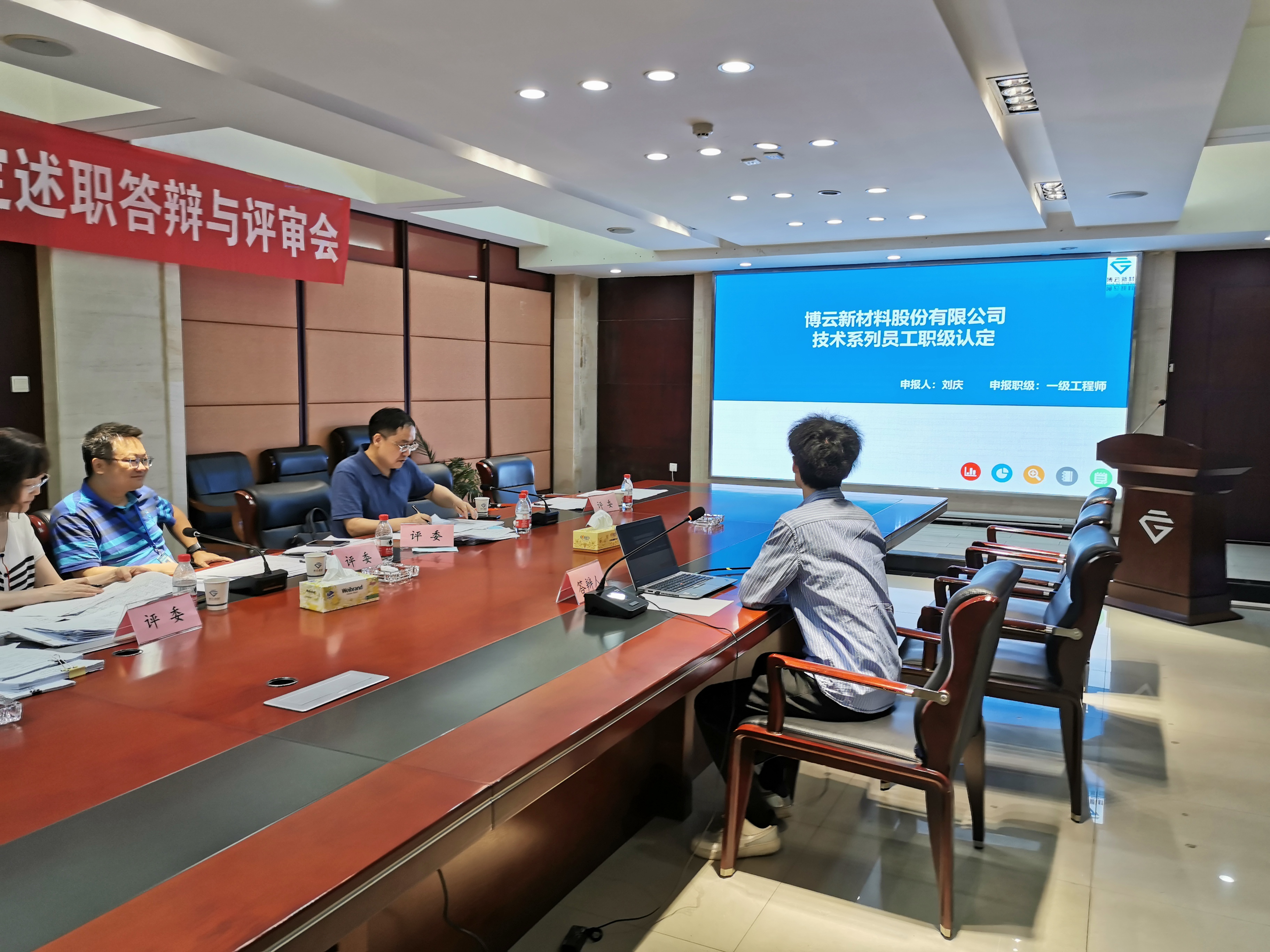 该项事情于2022年4月25日启动,,,,,,先由申报人提交资料,,,,,,再由事业部人事部对申报质料举行审核,,,,,,公司人力资源部对职员资格举行审查,,,,,,于5月30日由公司人力资源部组织开展了现场述职答辩与评审。。。。。。。。在现场述职答辩与评审阶段,,,,,,公司约请了中南大学质料学专家张红波教授、汪琳高工担当本次评审事情的评委。。。。。。。。评委们对本次手艺系列员工职级认定事情予以了一定,,,,,,同时还指出职级认定事情应团结公司营业生长需要开展,,,,,,在实践历程中进一步完善评判标准。。。。。。。。