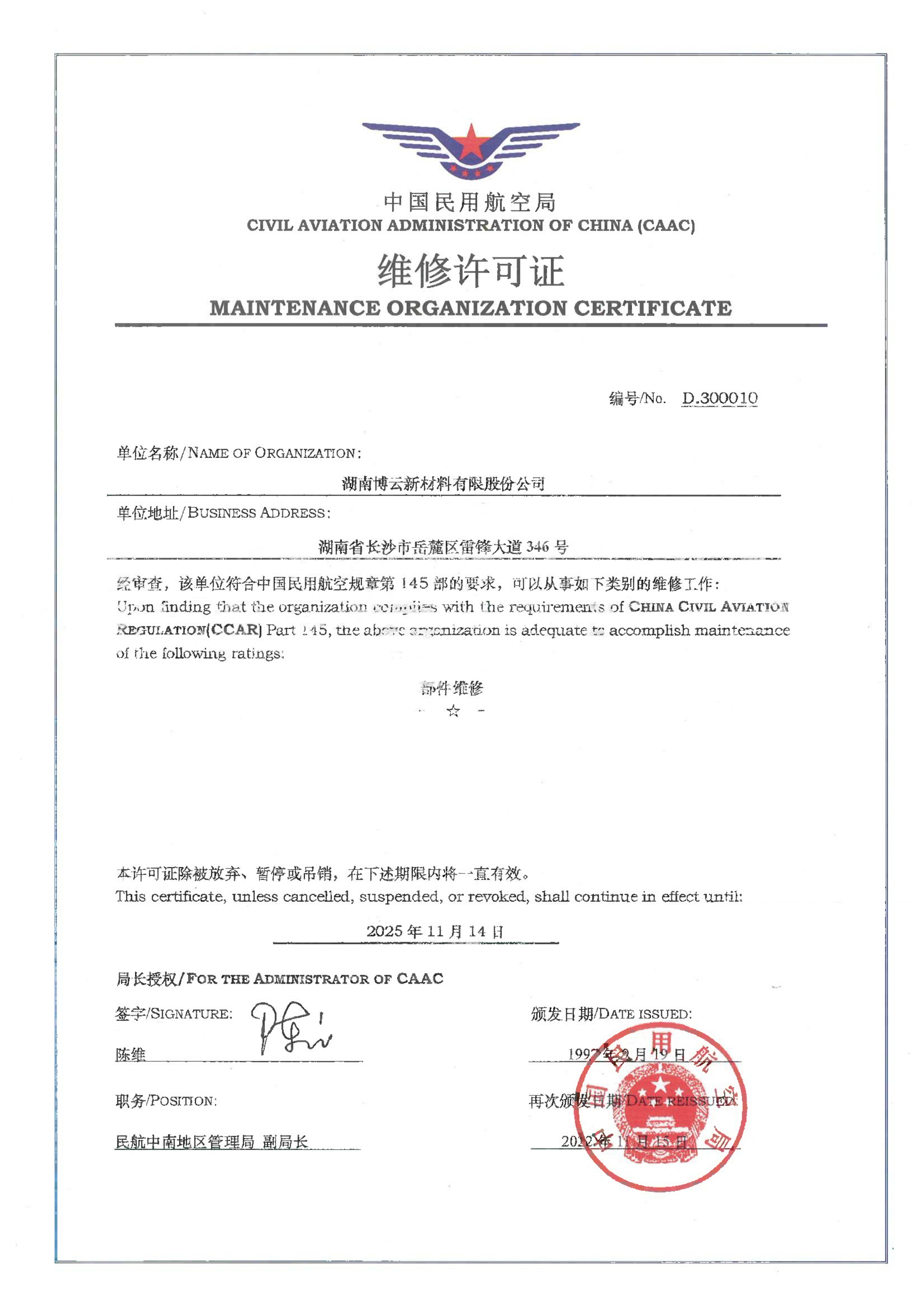 ¡¾ÌáÒªÐÎò¡¿¿ËÈÕ£¬ £¬£¬£¬£¬£¬£¬Ãñº½ÖÐÄϵØÇø¹ÜÀí¾ÖÅú׼ͨ¹ýºÃ²©(Öйú)ÌåÓýвÄCCAR-145R4°æ¡¶Î¬ÐÞÔÊÐíÖ¤¡·²¢½ÒÏþÖ¤Ê飬 £¬£¬£¬£¬£¬£¬Õâ±ê¼Ç׏«Ë¾´Ë´ÎCCAR-145R4»»Ö¤ÊÂÇéÔ²ÂúÍê³É¡£¡£¡£¡£ ¡£ ¡£¡£